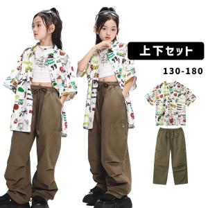 キッズダンス衣装 セットアップ ヒップホップ ファッション ダンス衣装 シャツ 迷彩パンツ 迷彩柄 カモフラージュ ミリタリー 派手 K-POP 韓国