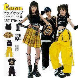 カーゴパンツ イエロー k-pop 衣装 キッズダンス衣装 セットアップ 女の子 へそ出し トップス チェック柄 スカート 半袖 男の子 tシャツ 黒 黄色 カーゴパンツ