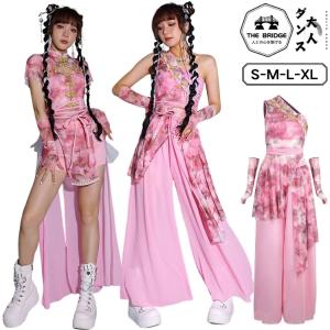 中華風 ダンス衣装 レディース 演出服 k-pop ステージ衣装 大人 かっこいい ピンク 花柄 セットアップ パンツ 中華ボタン チャイナ風 学生 ジャズ 古典 社交ダ