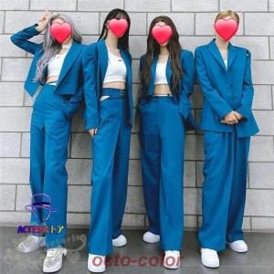 韓国 k-pop 一部即納ダンス衣装 セットアップ ブルー ガールズ 女性 スーツ ジャズ ダンス衣装 上下 チーム イベント ダンスウェア JAZZ おしゃれ 演出服 発表会