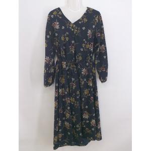 ◇ ◎ fifth フィフス 花柄 Vネック 長袖 ロング ワンピース サイズM ネイビー マルチ レディース P