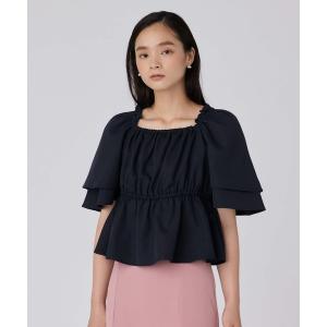 ブラウス シャツ ギャザースクエアネックブラウス レディース