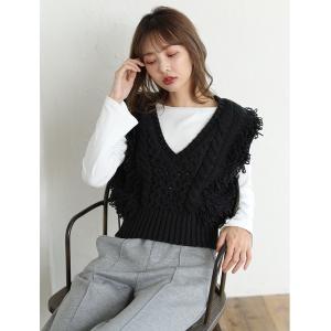 ベスト ジレ フリンジニットベスト レディース