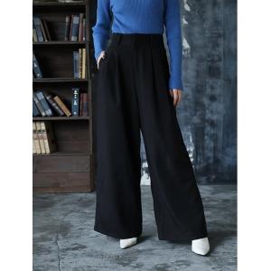 パンツ 「U150サイズあり」起毛ハイウエストタックワイドパンツ レディース