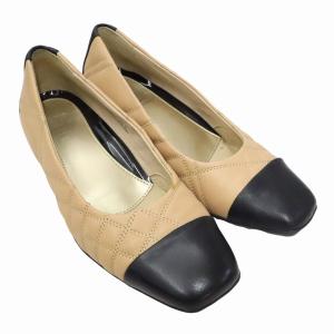 fitfit フィットフィット スクエアトゥ ヒールニーカー ローヒール バイカラー キルティング パンプス 24cm BEIGE(ベージュ) レディース