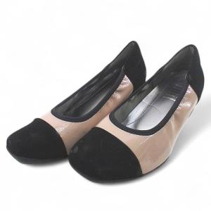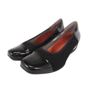 フィットフィット fitfit 美品 撥水バイカラーパンプス スクエアトゥ エナメル 24.5 黒 ブラック レディース