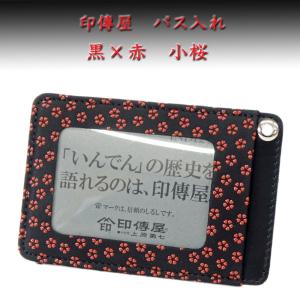 印傳屋 印伝 パス入れ 定期入れ 2525 黒地鹿革 赤漆 小桜柄 爆買