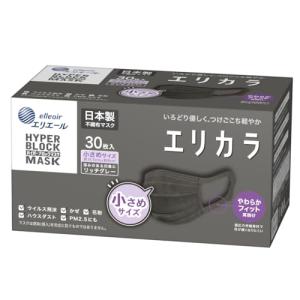 エリエール 日本製 不織布 Zuttoハイパーブロックマスク エリカラ リッチグレー 小さめサイズ 30枚入 PM2.5対応