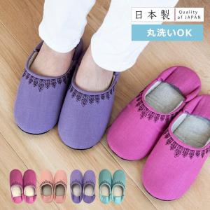 スリッパ ルームシューズ 洗える 室内履き 黒レース刺繍のルームシューズ あたたか 日本製 麻 バブーシュ おしゃれ 室内 部屋履き 来客 オカ