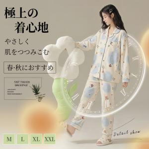 パジャマ レディース 長袖 パジャマ レディース 春秋用 綿ガーゼ 長袖長ズボン日系 可愛いルームウェアセット