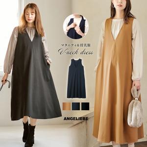 授乳服 マタニティ 服 ワンピース Vネック ポンチ フレアー ジャンパースカート 妊婦服 マタニティワンピース 仕事服 通勤服