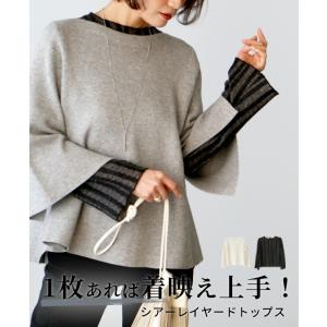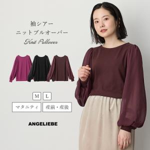 ニット レディース 袖ボリューム トップス 長袖 マタニティ 袖シアー ニット プルオーバー リブニット きれいめ 通勤 仕事服 授乳服 授乳口