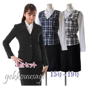 事務服 ベストスーツ 3点セット 制服 仕事着 オフィススーツ 2つボタンジャケット ブラック ブラック系ストライプ +ベストスーツ 3点セット 330