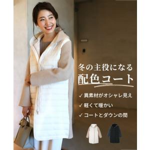 アウター コート 軽い 羽織り ボンディング フード 異素材 バイカラー ロングコート 中綿 レディース アウター フリーサイズ スタイル style