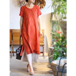 ワンピース ワンピ 半袖 オレンジ デザイン レディース ミセス 婦人服 服 Vieo ヴィオ 40代 50代 60代 フリーサイズ