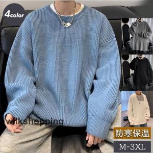ニットセーター メンズ クルーネック リブ トップス ニット セーター 無地 秋冬 シンプル 長袖 男性 秋冬 防寒 ゆったり