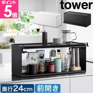 山崎実業 前が開くキッチンカウンター上収納ラック タワー D24 4903208014540 4903208014557 調味料ラック スパイスラック ブレッドケース