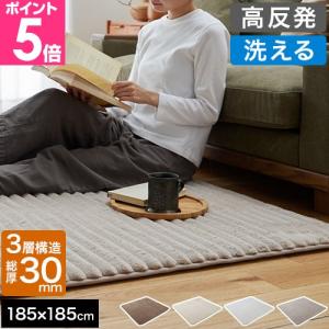 洗えるラグ とろける肌触りのふんわりラインラグ 丸洗いできる高反発ウレタンタイプ 185×185cm ラグマット カーペット シャギーラグ 絨毯 厚手 床暖房