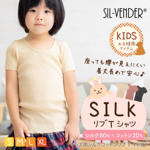 キッズ Tシャツ 半袖 シルク コットン 綿 送料無料 天然素材 100% リブ インナー トップス 可愛い 男の子 女の子 80 100 120 140 敏感肌 保湿 アトピー