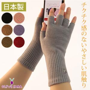 手袋 レディース 指なし 日本製 オリーブサラ 指先カット ハンドウォーマー ちくちくしない ウイルス対策 在宅勤務 テレワーク