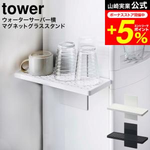 tower 山崎実業 ウォーターサーバー横マグネットグラススタンド タワー 公式 ホワイト/ブラック 5997 5998 送料無料 / 側面 冷蔵庫 水切りトレー コップ グラス