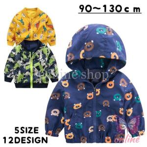 ウィンドブレーカー ブルゾン アウター 子ども服 ジップパーカージャケット 長袖 ジップアップ フード付き レインボー 恐竜 アニマル ウサギ 車 カ