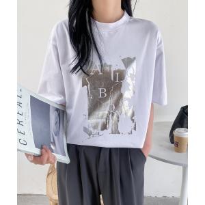 tシャツ オリジナル箔メタリックロゴプリントTシャツ レディース