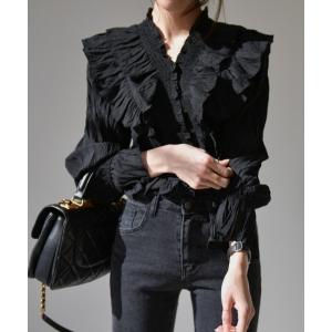 ブラウス シャツ ショルダーフリルワッシャーブラウス レディース