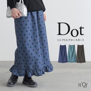 スカート レディース ボトムス ナロースカート ロングスカート ドット柄 水玉 フリル ウエストゴム 楽ちん 返品交換不可 「メール便不可」「20」
