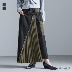 デニムスカート ロング レディース ボトムス アシンメトリー 異素材 プリーツ 配色 切替 ウエストゴム Aライン 個性派 「メール便不可」「30」