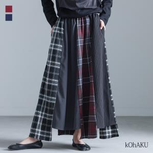 フレアスカート ロング レディース ボトムス アシンメトリー 切替 無地 チェック柄 ストライプ柄 配色 50代 春 秋 冬 「メール便不可」「30」