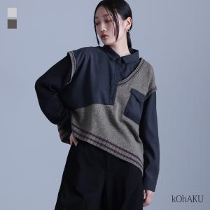 トップス レディース ニット ニットトップス レディースニット 長袖 モード ドッキング 配色 アシンメトリー シャツ 返品交換不可 「メール便不可」「30」