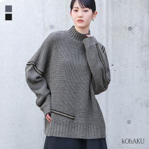 ニット 長袖 レディース トップス セーター ハイネック 畦編み チェーン テープ プルオーバー ハイネックニット ゆったり 秋 冬「メール便不可」「40」
