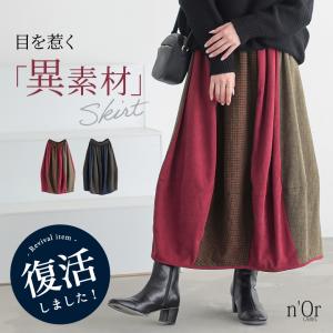 コクーンスカート ミモレ丈 レディース 秋 冬 ボトムス 柄切替 チェック柄 無地 ツイード コーデュロイ 異素材 配色[メール便不可][20]