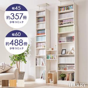 本棚 コミックラック 幅45cm スリム 大容量 突っ張り式 漫画 DVD CD 収納 壁面収納 省スペース 可動棚 オープンラック おしゃれ ハリー
