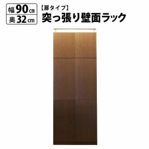 本棚 大容量 扉付き スリム 突っ張り 壁面収納 薄型 コミック マンガ 文庫本 収納 幅90cm 奥行32cm 爆買