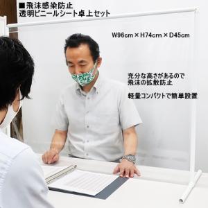 TOSPA 透明ビニールシート 卓上スタンドセット W96cm ×H74cm ×D45cm 感染対策 飛沫防止用 パーテーション 間仕切り