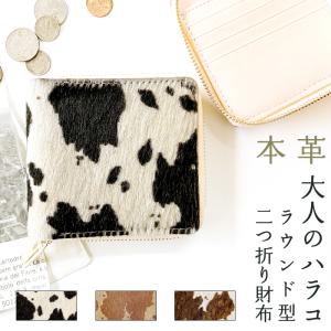 本革 財布 二つ折り ラウンド型財布 ハラコ風 ラウンドファスナー サイフ さいふ ウォレット 革 レザー カード収納 革財布 ラウンド財布