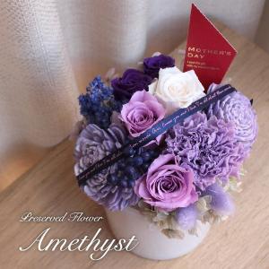 プリザーブドフラワーアレンジ アメジスト クリアケース入 贈り物 お祝い カーネーション ホワイトデー プレゼント ギフト 母の日
