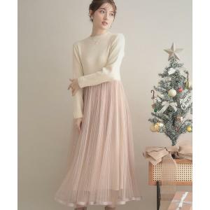 Couture Brooch / クチュールブローチ 【S-LL/キラキラリブニット】チュールドッキング ワンピース