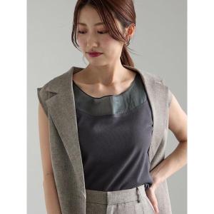 tシャツ シアー切替スクエアネックタンクトップ レディース