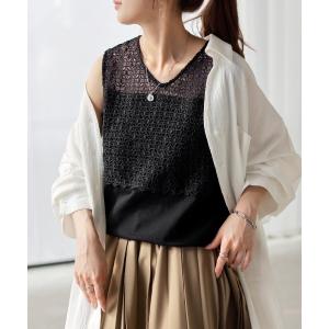 タンクトップ ノースリーブ 前後2WAY 異素材レースタンクトップ レディース
