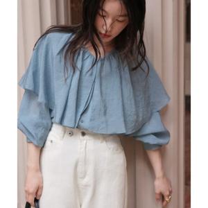 ティティベイト titivate ビッグフリルカラーブラウス (ブルー)
