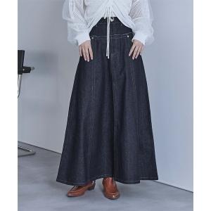 デニムスカート フリンジ切り替えフレアデニムスカート