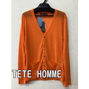 TETE HOMME テットオム メンズ、タグ付き未使用 オレンジ色カーディガン サイズ5(M)