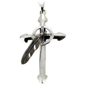 クロス ペンダントヘッド(チェーンなし) フェザー 羽根 ネイティブ ネックレス ペンダント シルバー925 銀 プレゼント