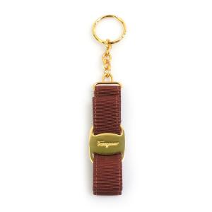 サルヴァトーレフェラガモ Salvatore Ferragamo キーリング キーホルダー ヴァラリボン キャンバス/メタル ブラウン/ゴールド