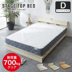 ステージトップベッド ヘッド付き 棚 コンセント付き 棚付きベッド ステージベッド ローベッド パイン天然木 ダブル バリューポケットコイルマットレスセット