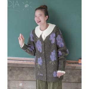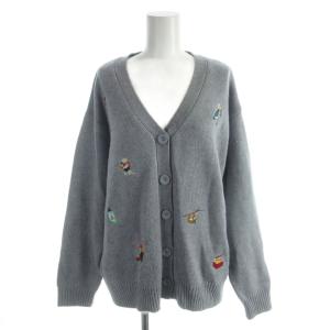 ニコアンド Niko and.. ピザトルコラボ 刺繍 ニット カーディガン セーター ウール F グレー Vネック 長袖 /AB ■OS レディース