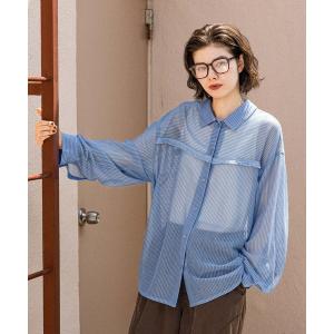 ブラウス シャツ ストライプフリンジシアーシャツ レディース